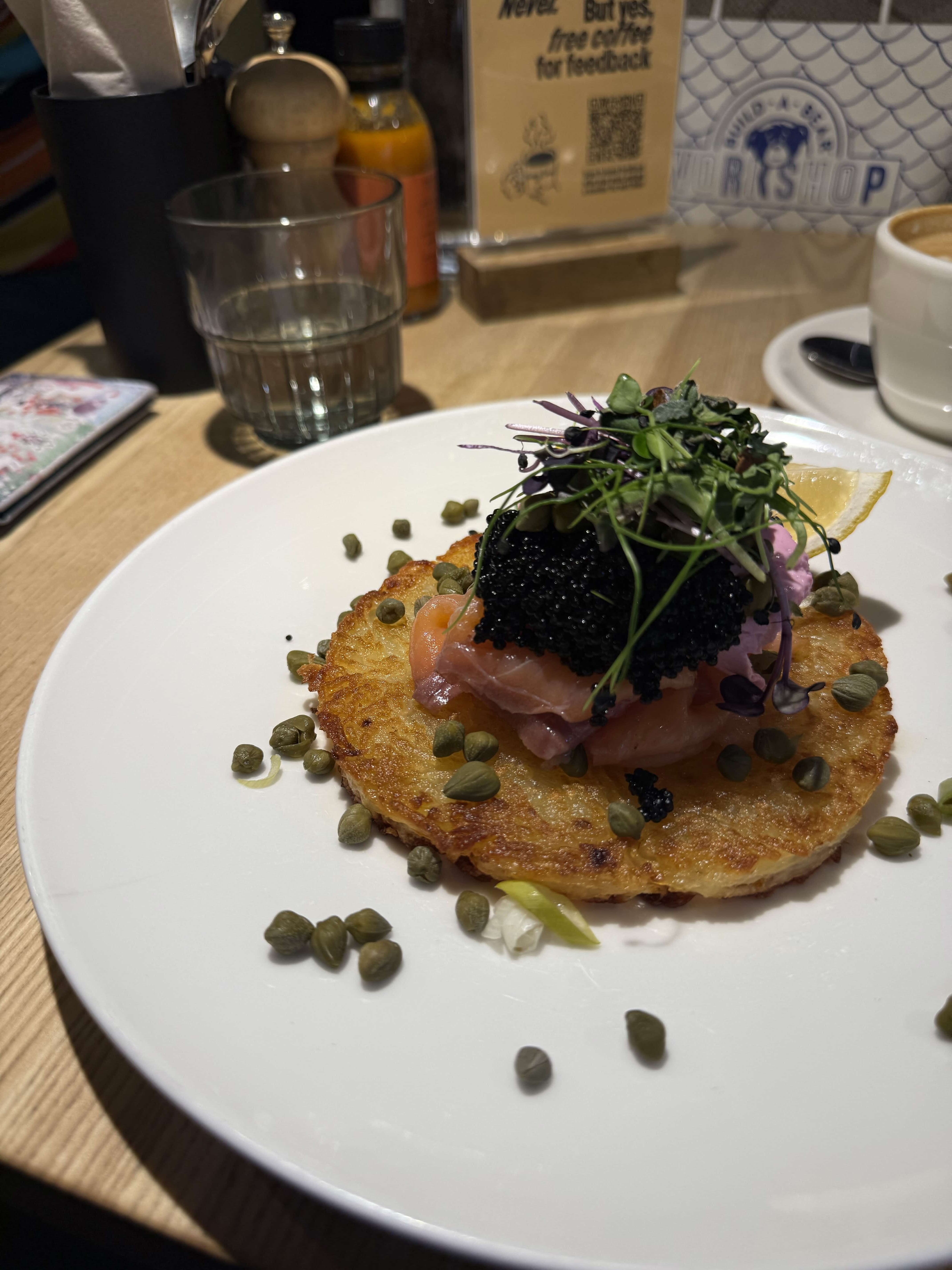 Yis rösti salmon black caviar capers
