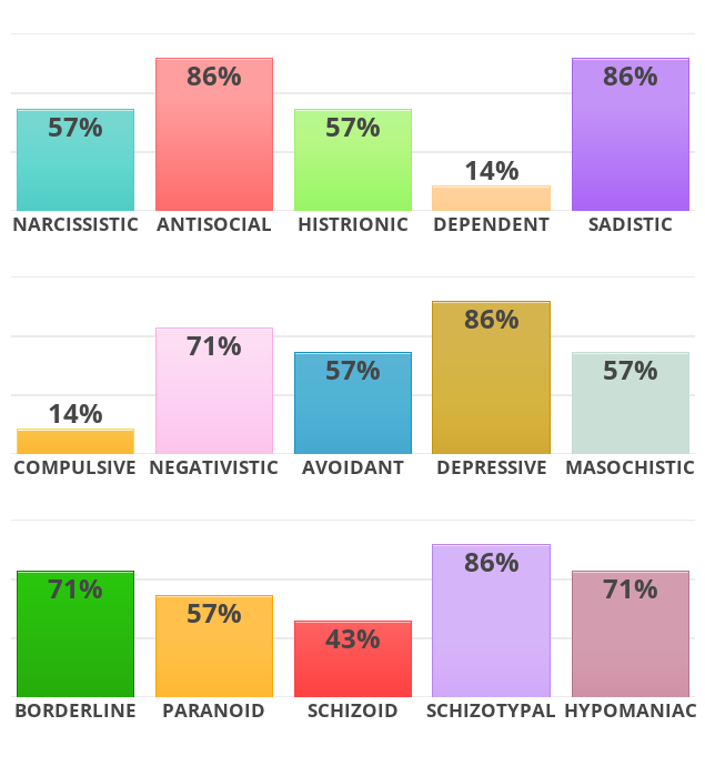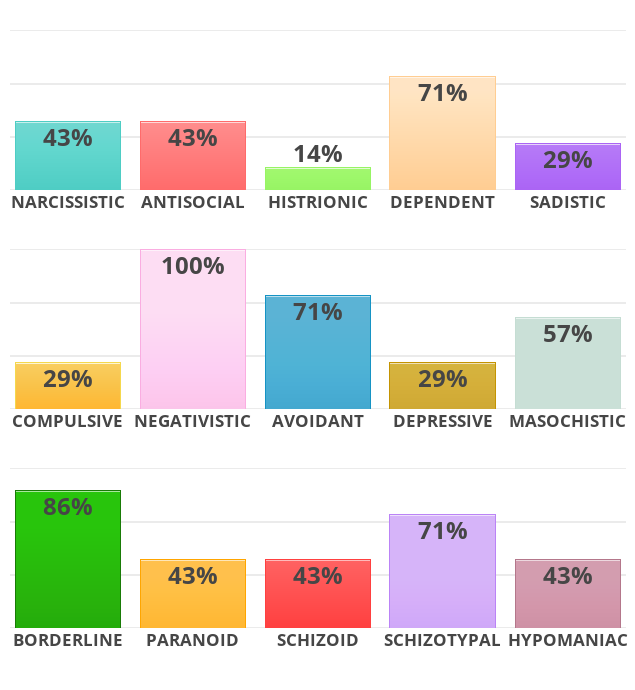 I got 100 % historionic and depressive and 86 % borderline and hypomaniac damn they rly just dragged me and called me an attention whore