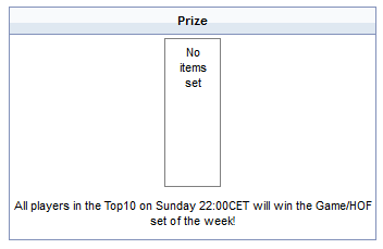 Yes, you can see in the Game section or if you hover the "All players in the HOF Top10 on Sunday 22:00CET will win the Game/HOF set of the week!" in the GameĀ statistics.
